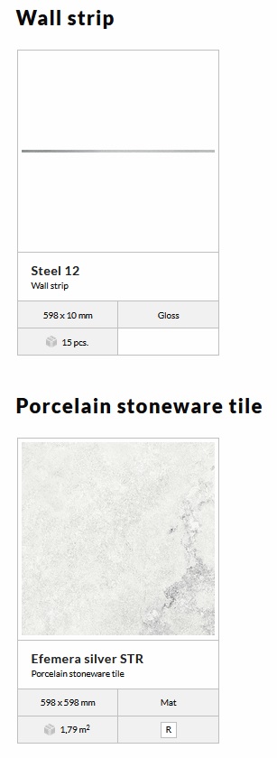 - Méret: Csempe : 29,8x59,8 cm, Padlólap: 59,8x59,8 cm